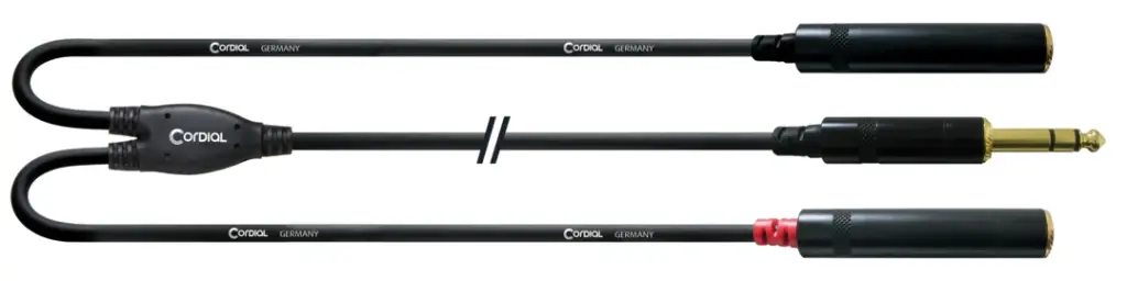 Cordial CFY0.3VGG 6,3 mm stereoplugi/2 x 6,3 mm monojakki Y-kaapeli 30 cm