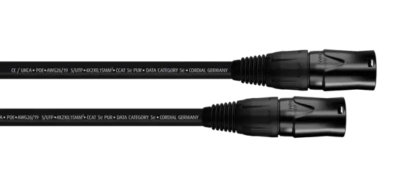 DMX / powerCON® hybrid cables combine DMX control signals and power supply into a single cable, reducing cabling requirements and simplifying installations. They are popular for moving lights and other power-requiring lighting fixtures in large live events and fixed installations using the DMX512 protocol.